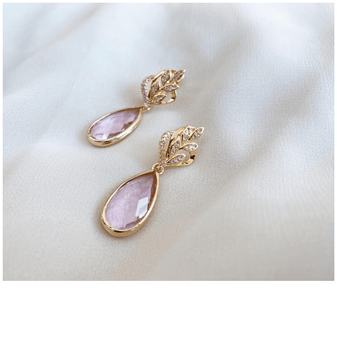 Aros chapados en oro de 18k con circones y cristal naturales.