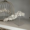 Preciosa corona de perlas naturales bordadas a mano con puntos de luz.